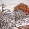 Immerse yourself in the enchanting beauty of winter with the Courthouse Rock in Winter by Byron Neslen Photography. This captivating print showcases the majestic Courthouse Rock adorned with a pristine blanket of snow, set amidst the stunning red rocks of Sedona, Arizona. The contrast between the white snow and the rich red hues creates a breathtaking visual spectacle.