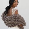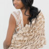 The Long Wrap Handmade Luxury Stole By Albrea is made from over 12 square yards of extremely soft, cream thin minky fabric. The patent pending stitching pattern, sewn with elastic thread, creates a unique puckering stretchable fabric, designed to make an elegant, luxurious, warm stole that can be used for black-tie formal events, proms, or as a shawl for casual wear.